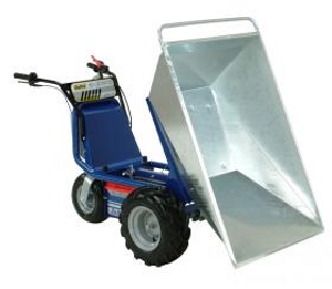 Fonctionne avec une batterie. Poids : 76kg Capacité/ Charge utile : 300kg Longueur châssis : 1330mm Longueur maxi : 785mm Hauteur : 940mm Pente admise (montée/descente) : 20% Autonomie : 35km Bennage assisté par vérin à gaz