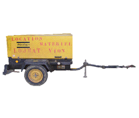 Carburant : fuel Hauteur : 1160mm Largeur : 1210mm Longueur : 2760mm Pression de service : 7 bar Débit d’air +/- 5% : 2600 litres/mn Les longueurs de tuyaux nécessaires sont fournies Attelage : chappe ou boule Capacité réservoir carburant : 40L